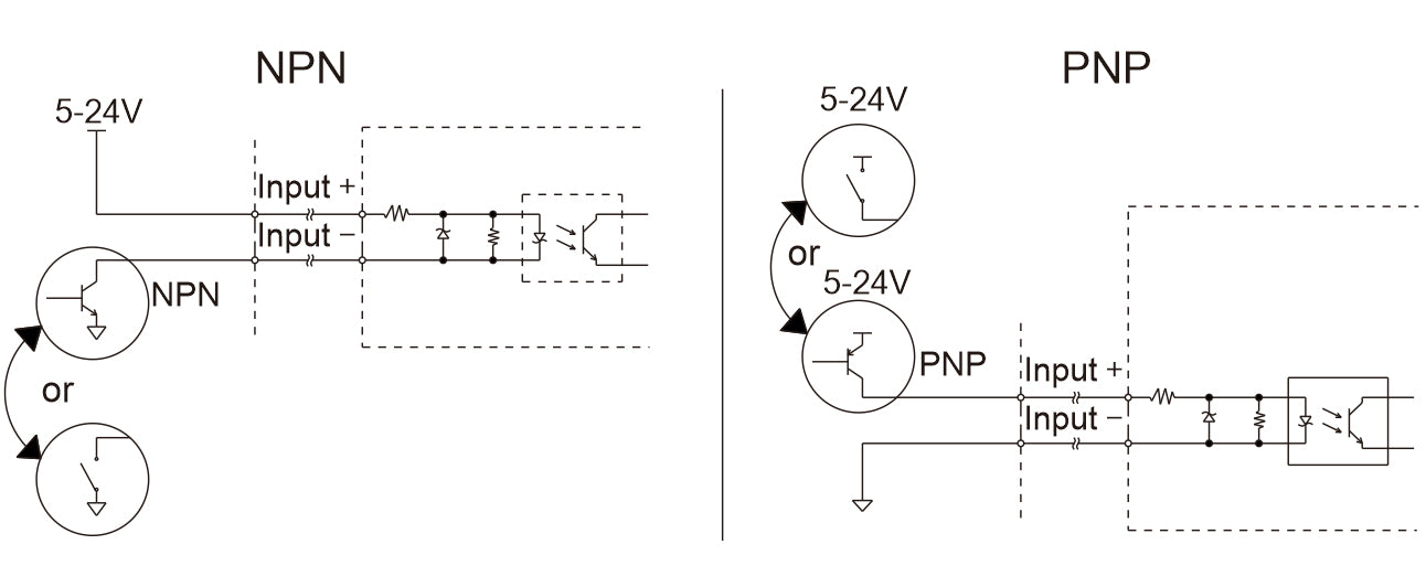 - Wiring: Supports NPN/PNP trigger schemes (see page-2 diagrams); TRIG “+” accepts 5–24 V.