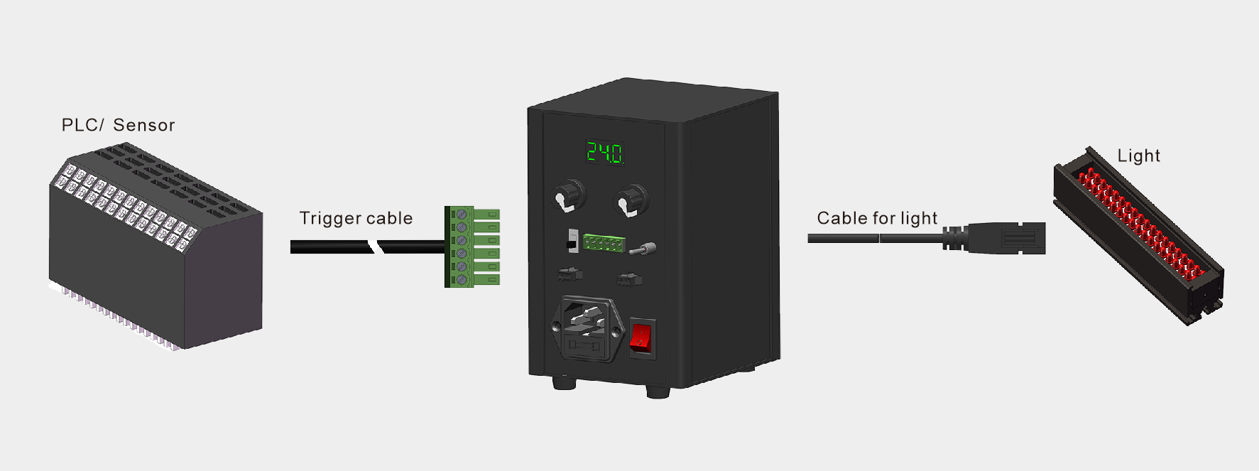 Multi-channel control of machine-vision bar, ring, or backlights; high-speed inspection with precise strobe timing; PLC-triggered stations; PC-controlled test setups over RS-232.